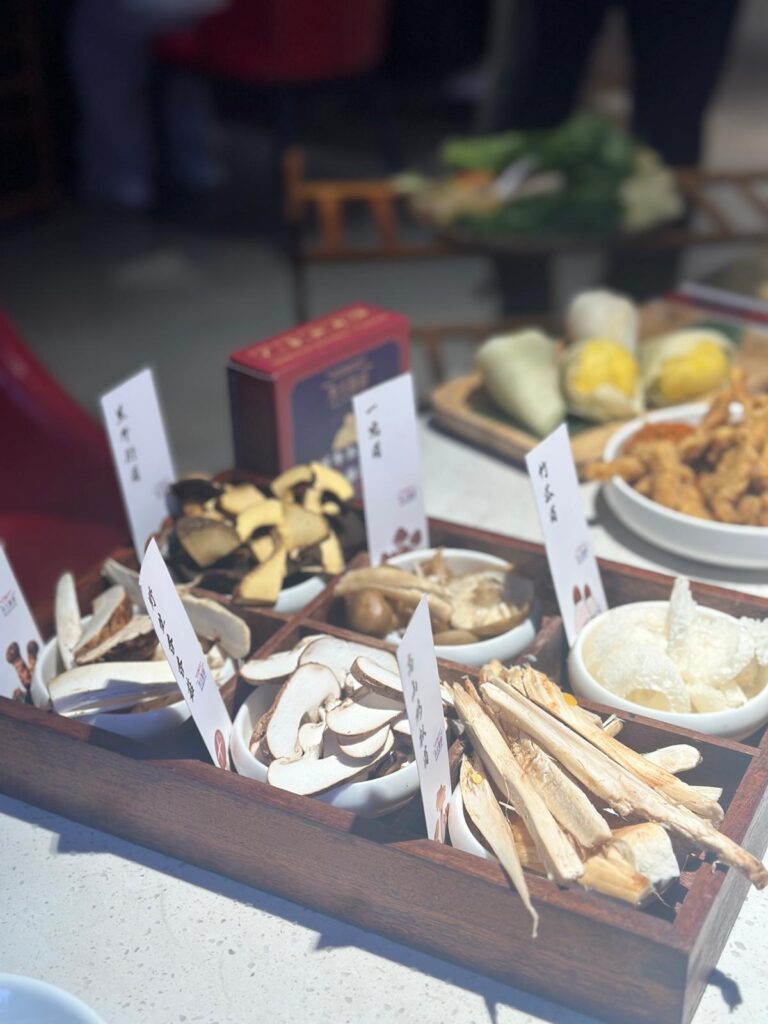 來到木王宴語,最不能錯過的,就是他們招牌的「墨脫石鍋菌火鍋」。石鍋沉穩厚重,被加熱後散發出微微石香。滾起的湯底是用雲南當季野生菌加上土雞慢熬而成,湯色清澈卻味道濃郁,一口下去,山林與泥土的鮮氣在舌尖散開。各式菌子被放進石鍋中吸飽湯汁,無論是脆口的青頭菌,還是香氣奔放的牛肝菌,每一口都像在吃森林給你的禮物。
