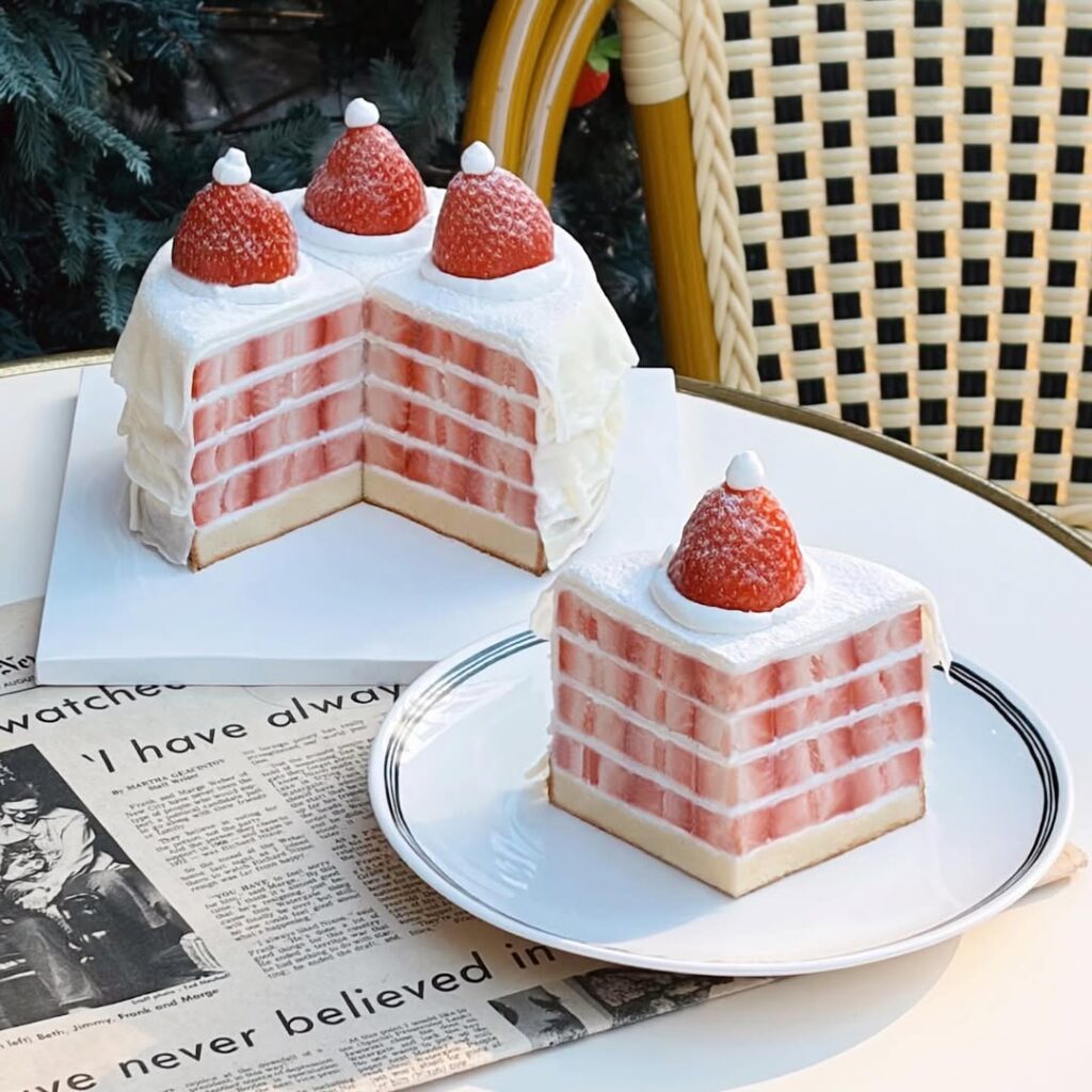 這裡主打水果毛巾卷與韓式馬卡龍,分量紮實,建議兩人分食。內餡嚴選高品質奶油,甜度適中且果肉爆量,搭配高 CP 值飲品簡直完美。正值聖誕季,更有塞滿鮮甜草莓的期間限定款,每一口都是幸福感爆棚的療癒滋味。